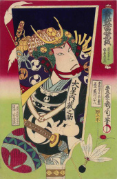 「役者絵の国周」といわれた明治前半を代表する絵師。江戸京橋に生まれ、10才頃豊原周信に学び、羽子板などに役者似顔絵を描きます。14才で幕末のトップ絵師・歌川国貞(三代豊国)に入門し、役者絵や美人画を得意としました。 豊原周信と歌川国貞を合せて豊原国周と名乗り、明治2年の役者似顔大首絵以後、「役者絵の国周」と評判を得ました。幕末三大絵師や歌舞伎の大物役者が明治を迎えることなく姿を消し新時代を迎える中、若手役者と共に明治の歌舞伎界と浮世絵界を盛り上げました。