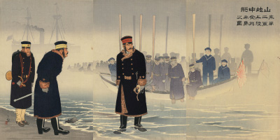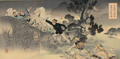 小林清親「山地中将第二軍率金州半島上陸之図」 明治27年