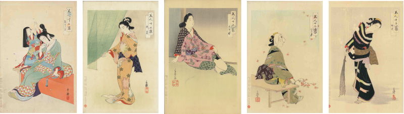 「美人十二姿」より 『きさらぎ』 『卯月』 『水無月』 『なが月』 『師走』 明治34年