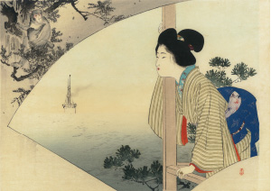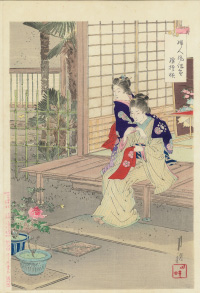 この浮世絵師と近代日本画界の交流が、浮世絵衰退期の中において明治後期の画風を方向付け、上質な作品を生み出しました。なかでも、美人風俗画といえる作品群は秀逸で、ここから近代美人画の大家鏑木清方・伊東深水へと繋がっていきました。