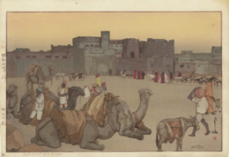 カペラリの作品制作を経て技術に自信を得た渡邊は、画家橋口五葉(1880〜1921)に版画制作を依頼し、1915年に日本人初の新版画として「浴場の女」を発表します。渡邊にとっては自信作でしたが、橋 口には満足できる出来ではなく、橋口が渡邊のもとで制作した新版画はこの一作品のみとなってしまいました。その後、伊東深水(1898〜1972)をはじめとして、名取春仙(1886〜1960)、山村耕花(1885〜1942)、土屋光逸(1870〜1949)、川瀬巴水(1883〜1957)のほか、洋画家として名をあげていた吉田博(1876〜1950)らを招き、次々と作品を発表していきます。渡邊はさまざまな画家の作品を見て回り、新版画にふさわしいものを選んでは、画家への直接交渉も行いました。チャールズ・バートレット(1860〜1940)やエリザベス・キース(1887〜1956)といった外国人画家も採用し、彼らのスケッチから異国の風景を描いた新版画などを制作しました。