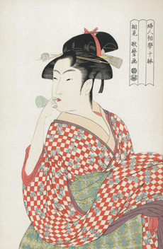 喜多川歌麿 「婦女相学十体 ポッピーを吹く娘」