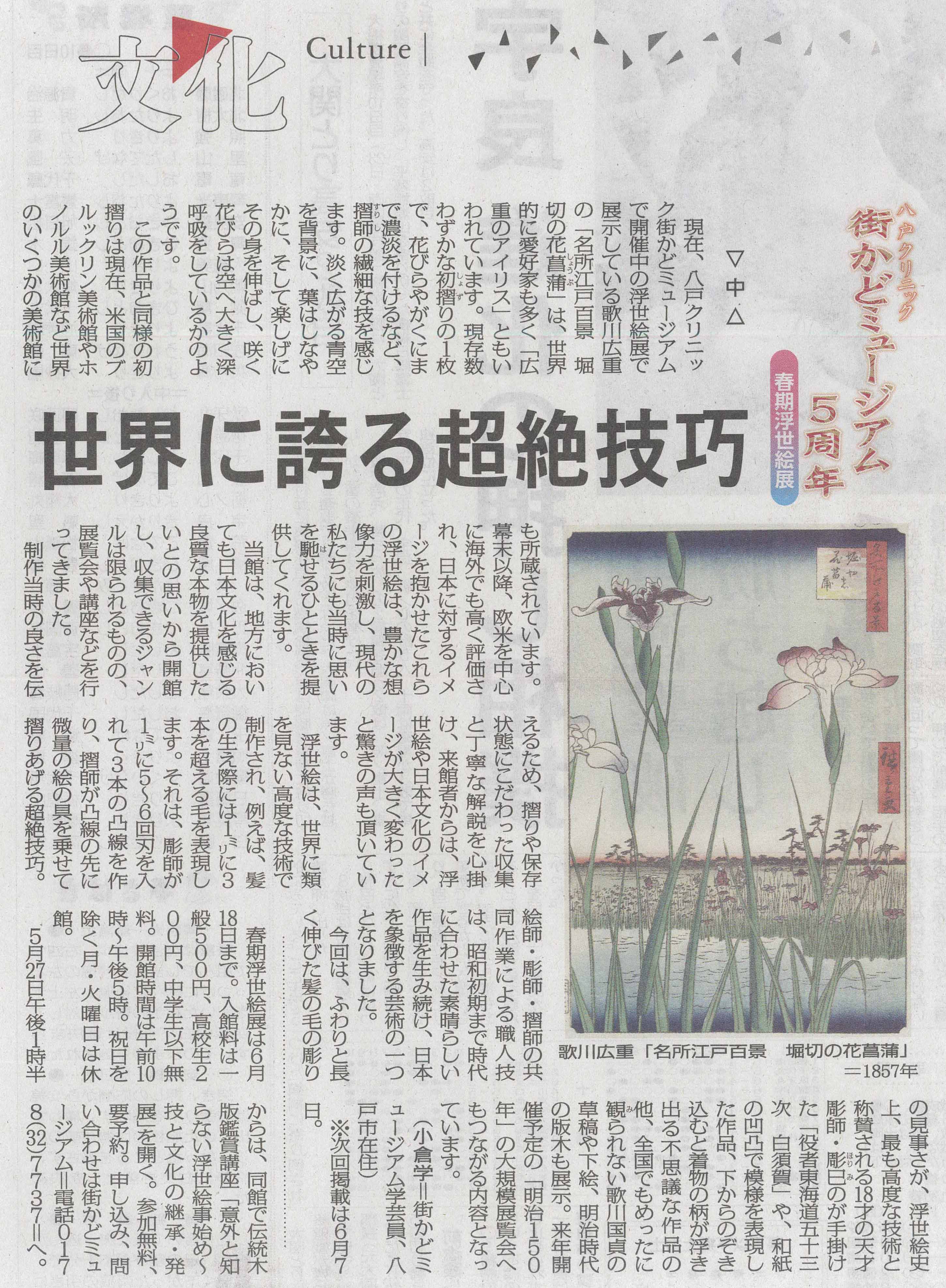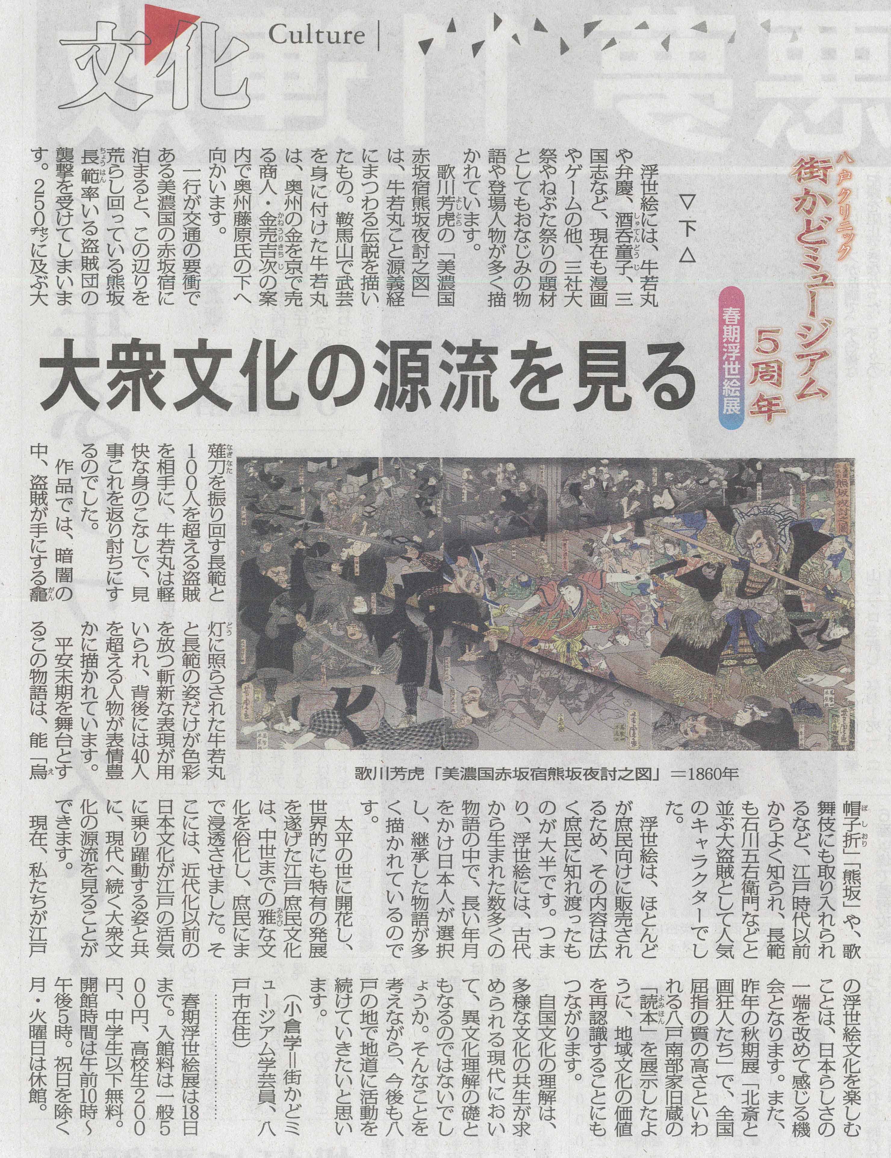 - 「はちのへクリニック街かどミュージアム5周年 春期浮世絵展」