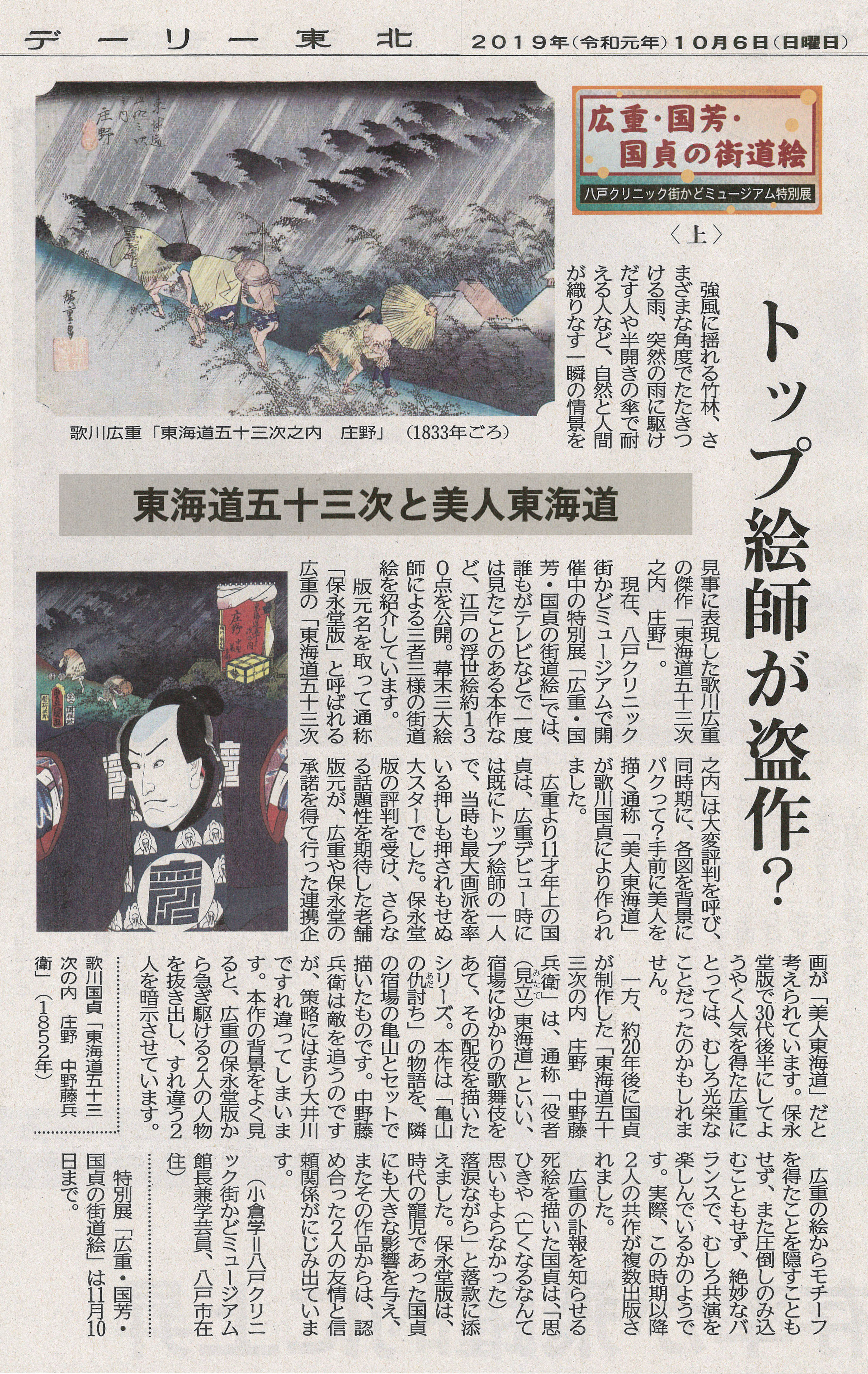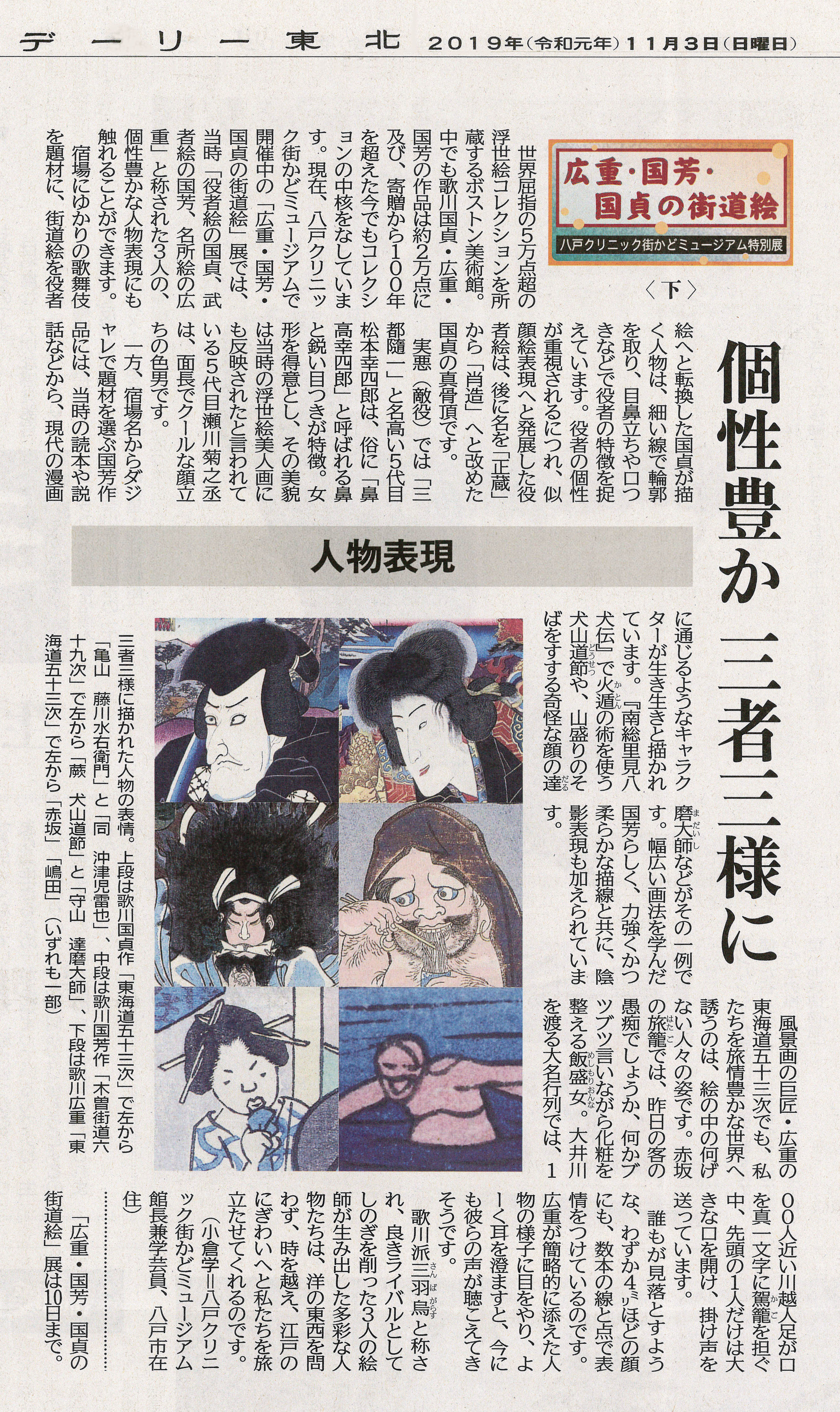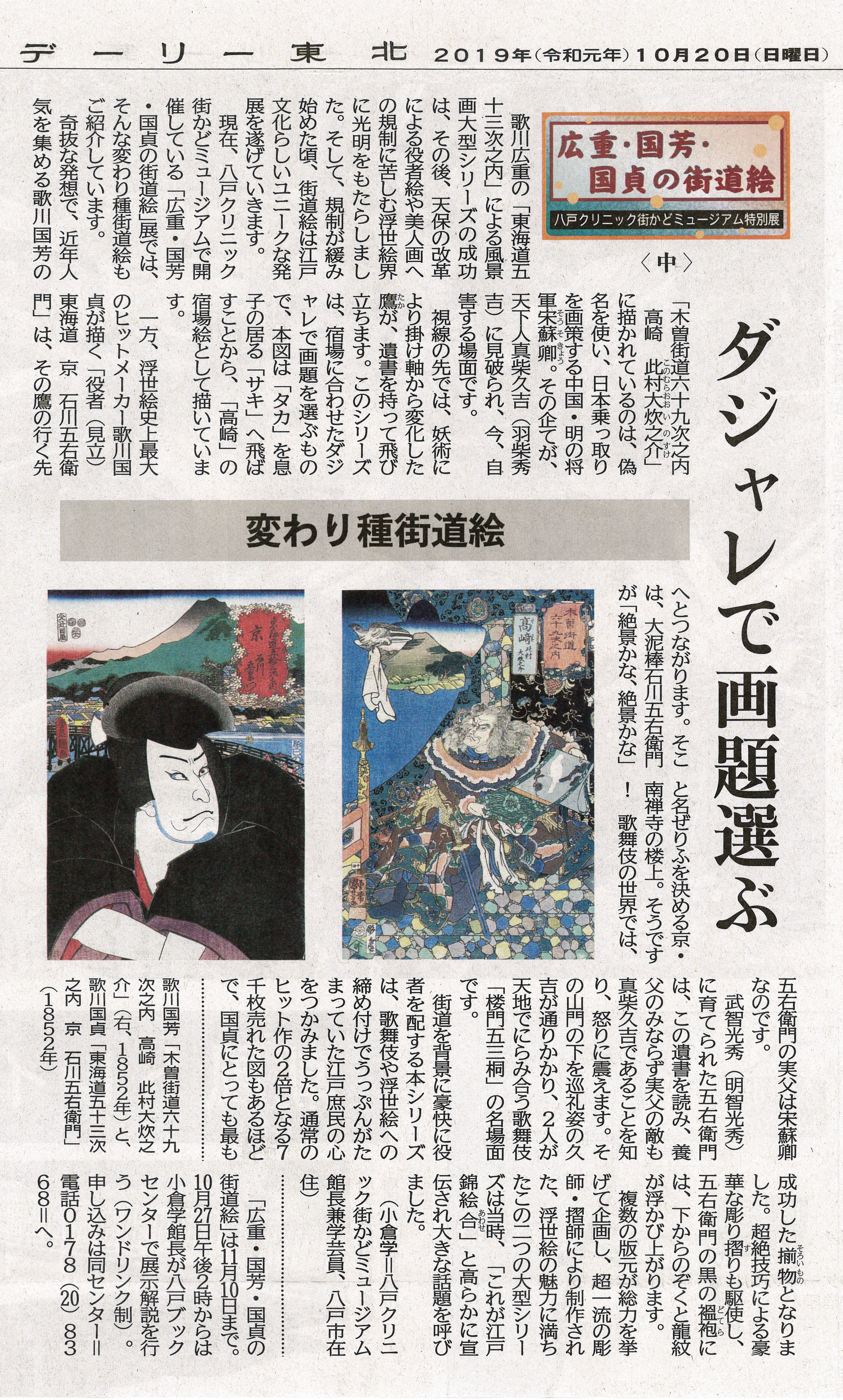 2019年9月掲載「浮世絵BIG3集結 八戸クリニック街かどミュージアムで秋期特別展」