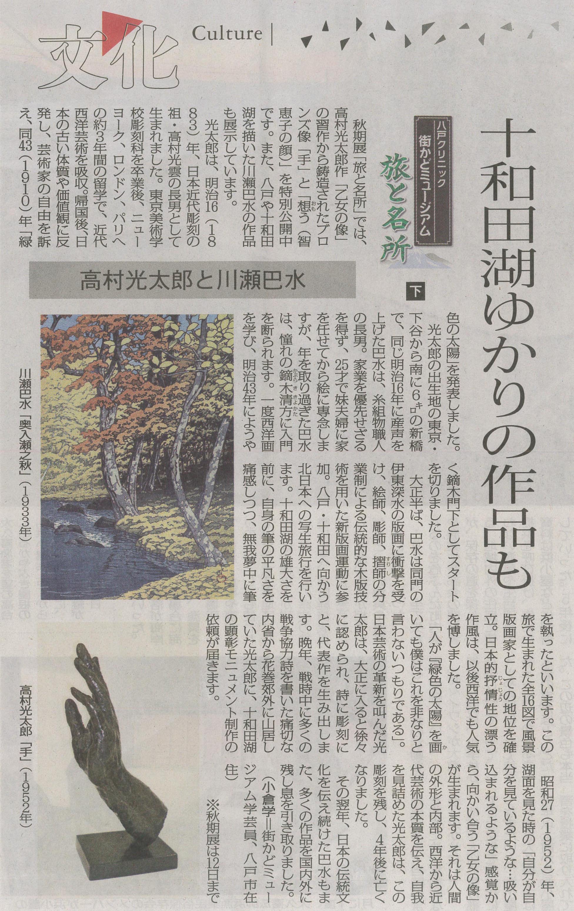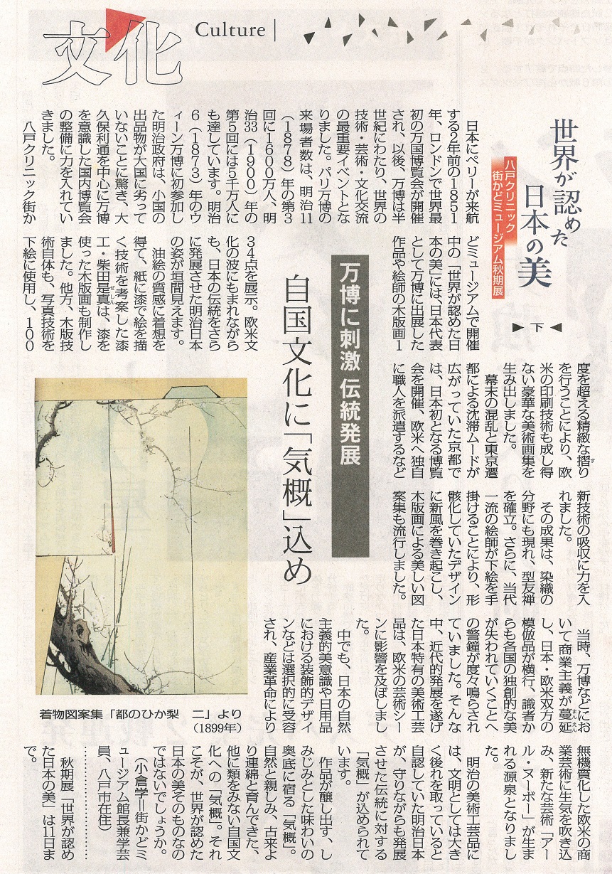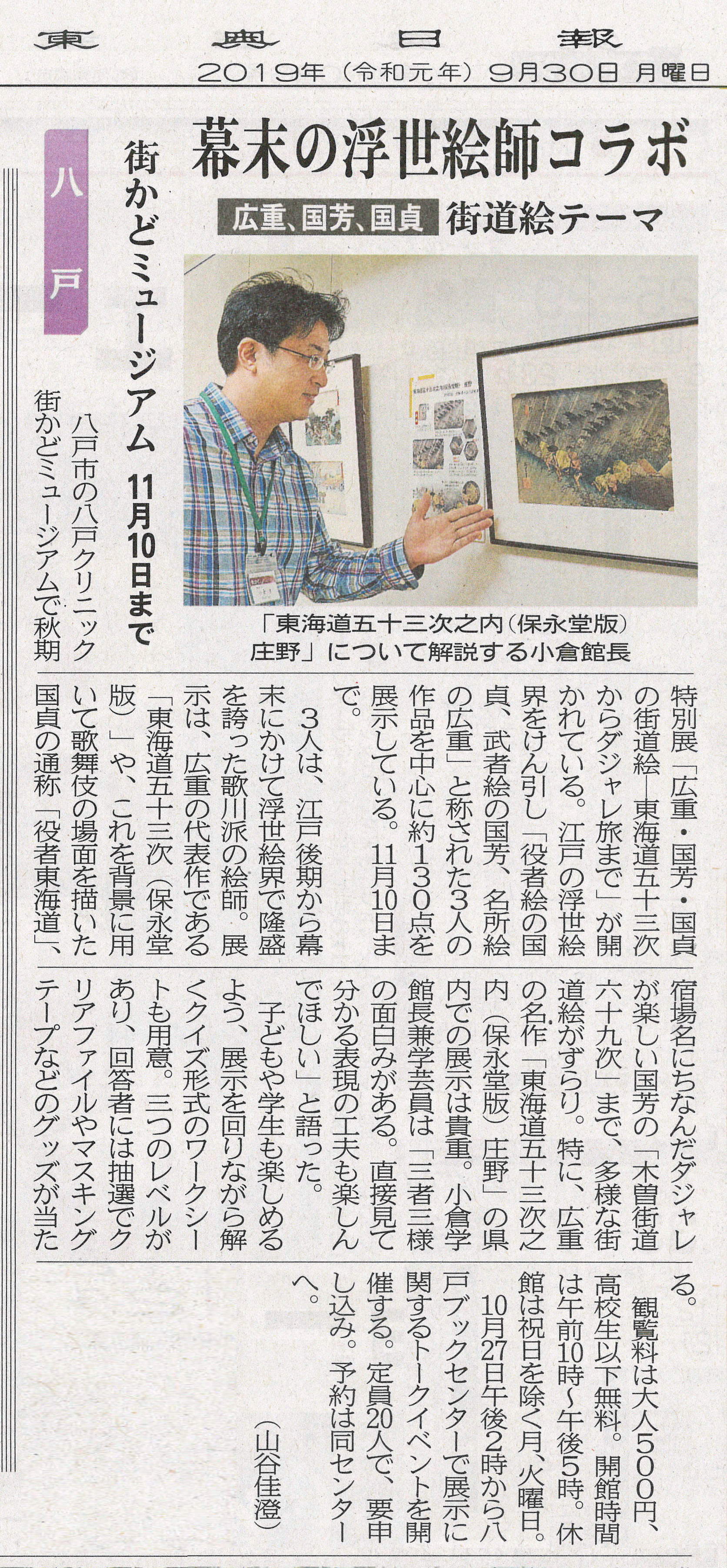 2019年9月掲載「浮世絵BIG3集結 八戸クリニック街かどミュージアムで秋期特別展」