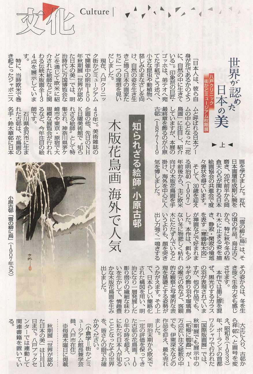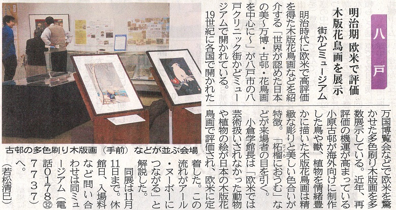 - 「明治期 欧米で評価 木版花鳥画を展示」(2018.09.30)