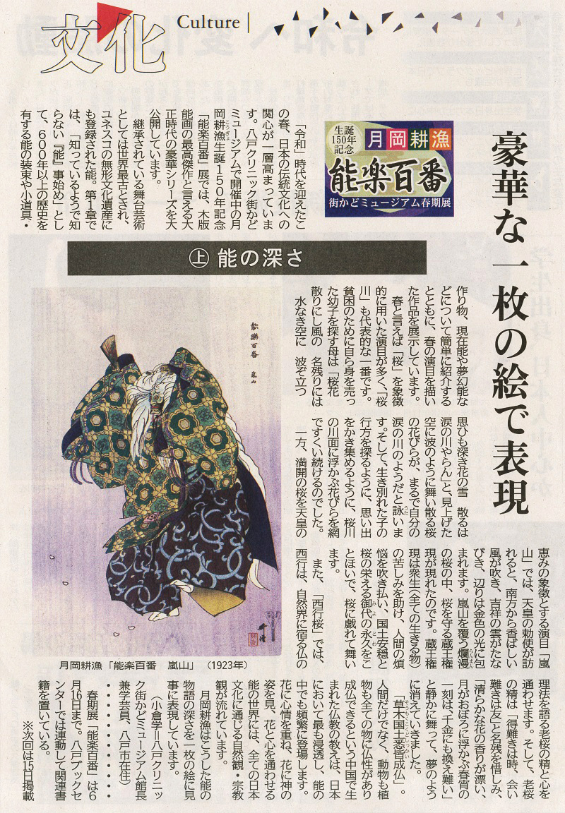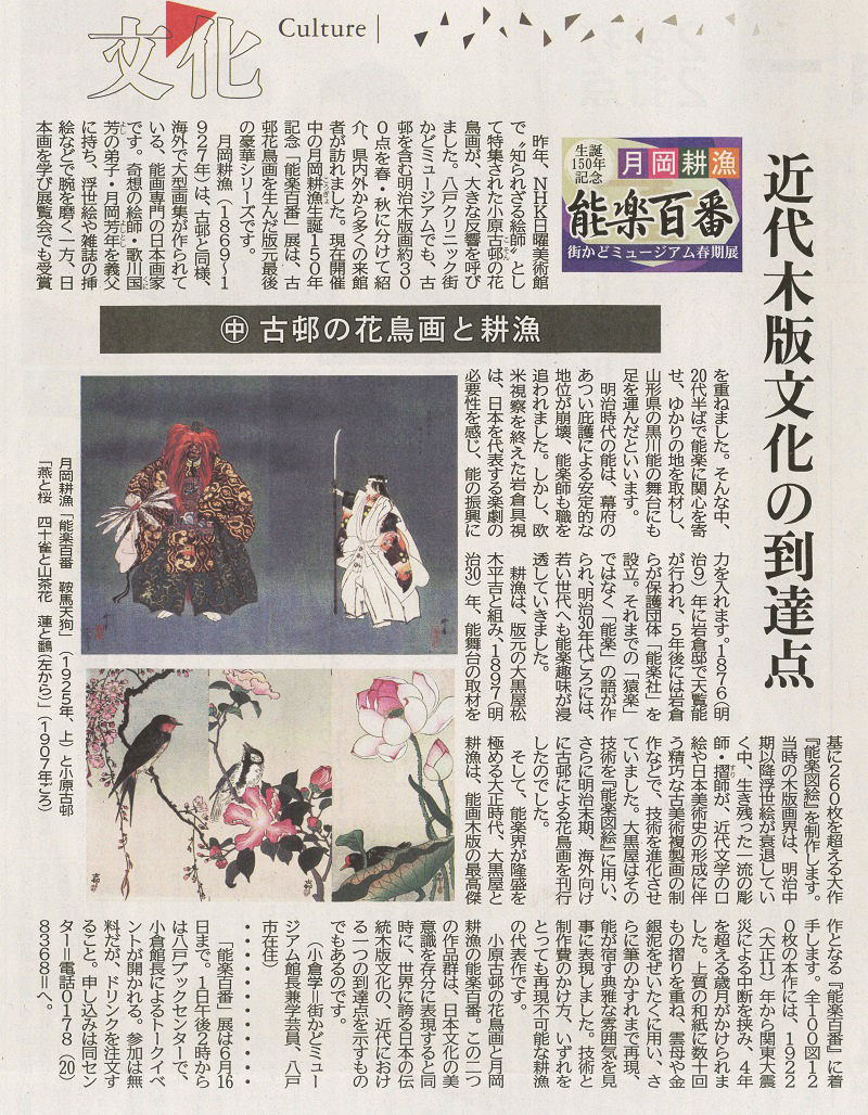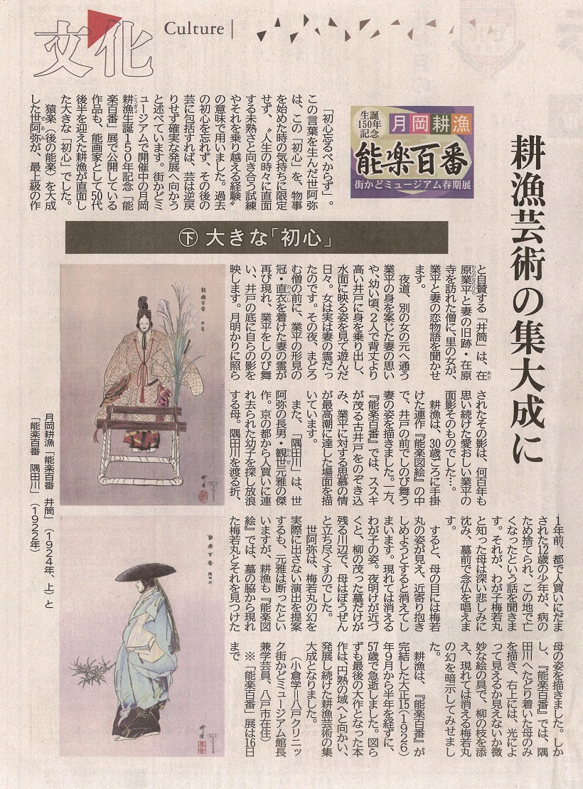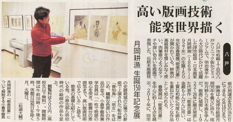 - 「月岡耕漁 生誕150年記念展 高い版画技術 能楽世界描く」(2019.4.24)