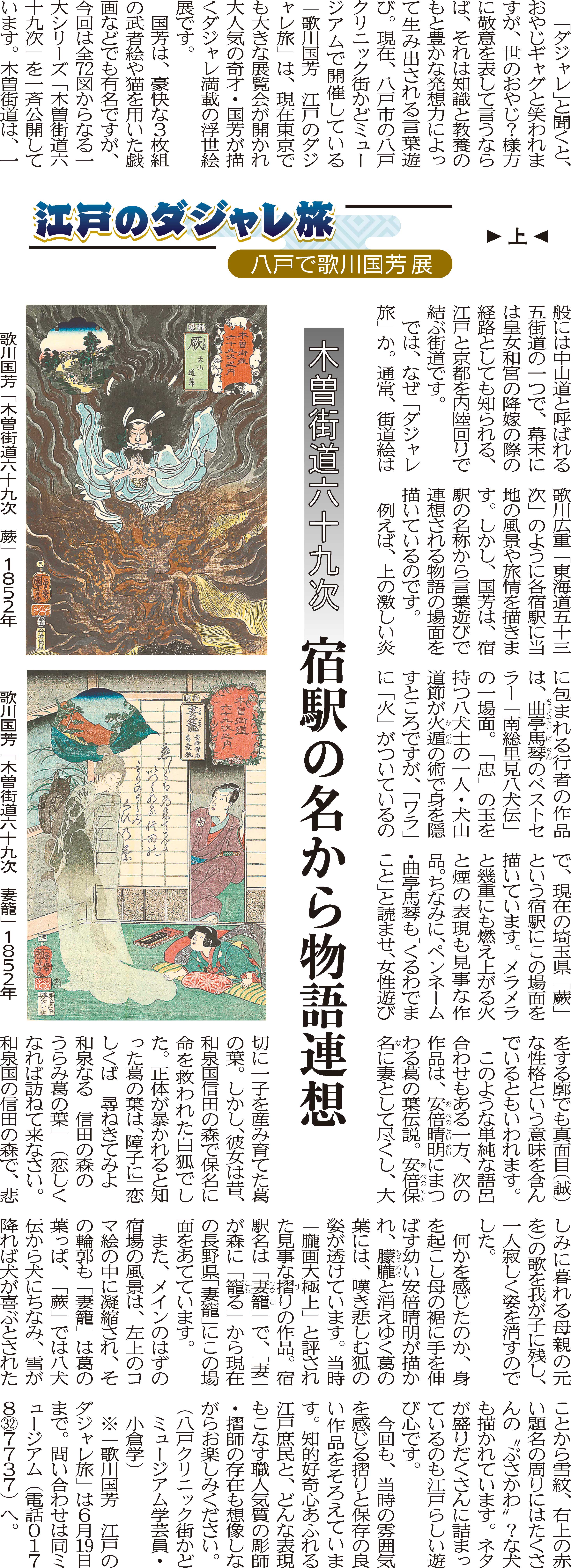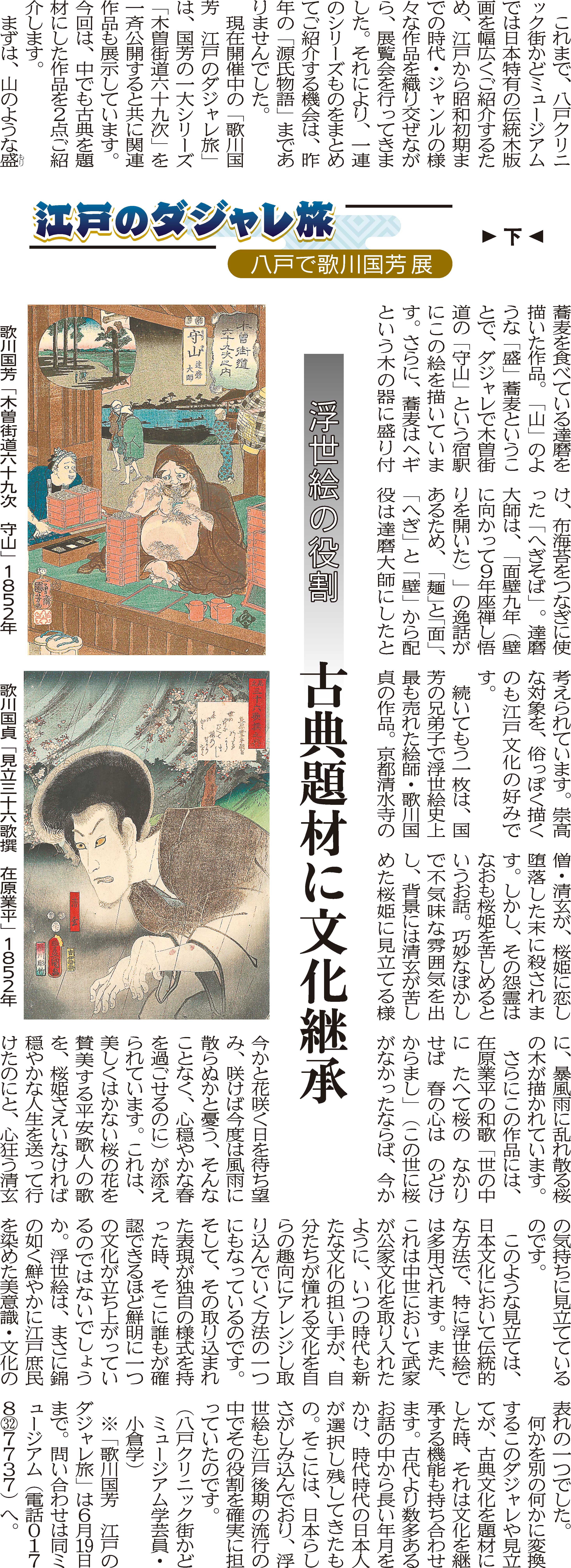 - 「江戸のダジャレ旅 八戸で歌川国芳展」