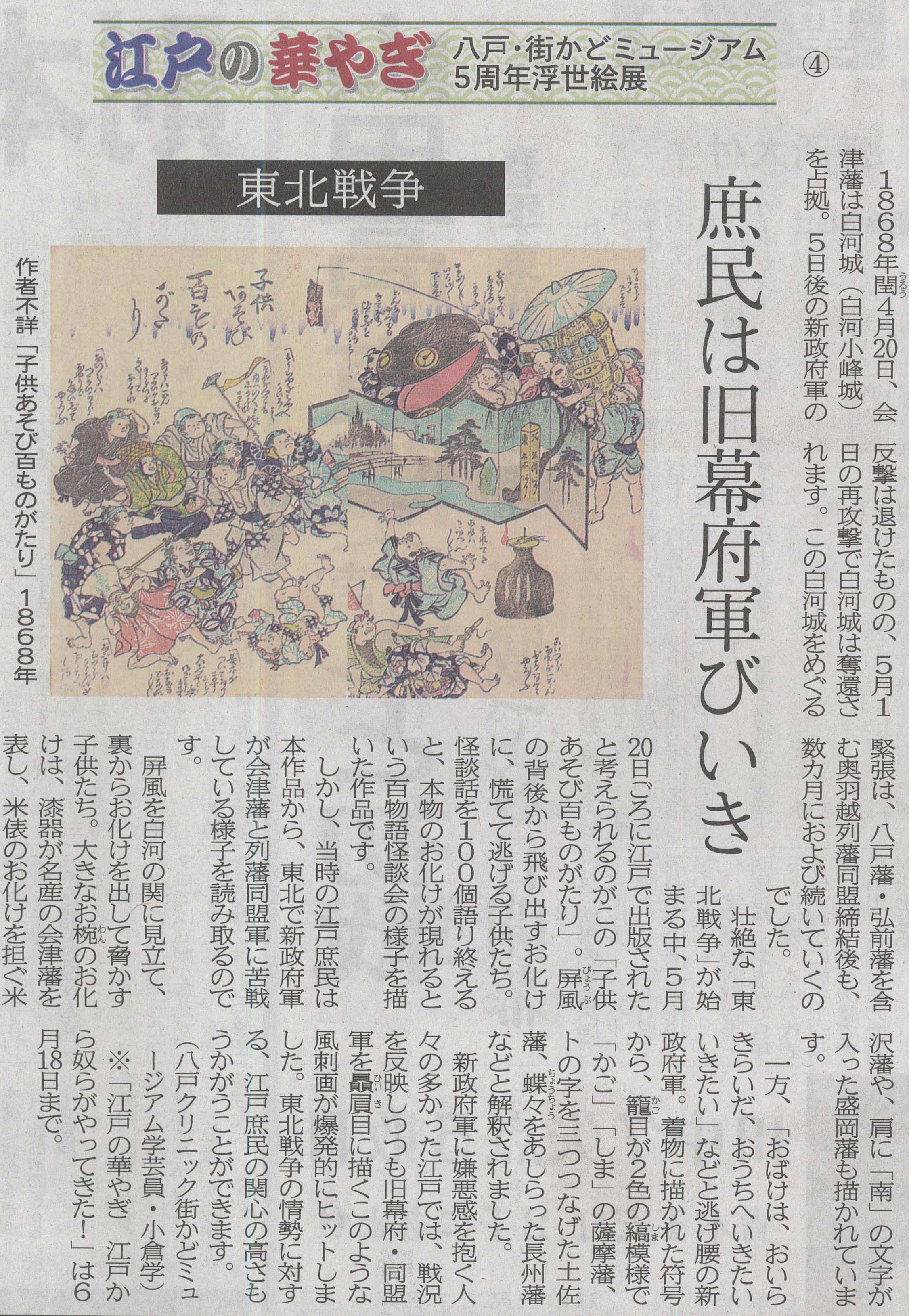 - 「江戸の華やぎ 八戸・街かどミュージアム 5周年浮世絵展」