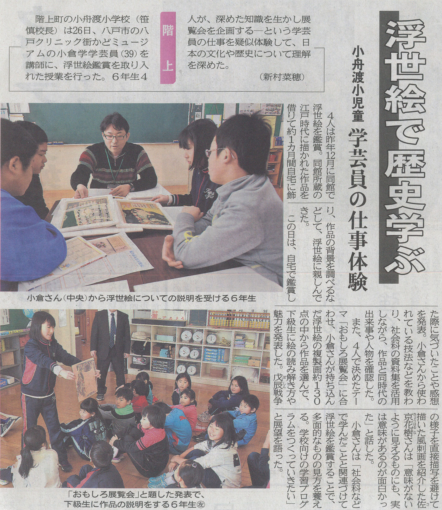 - 「浮世絵で歴史学ぶ 小舟渡小児童、学芸員の仕事体験」(2017.01.27)