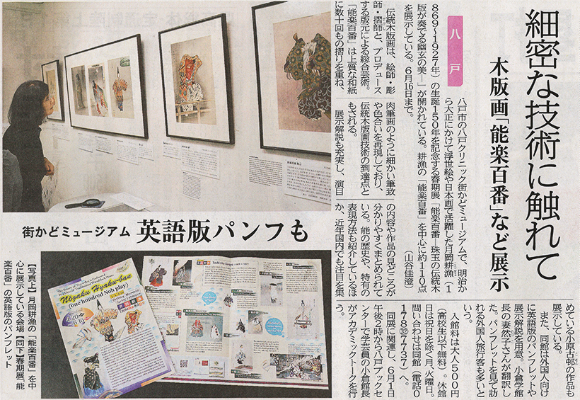 - 「細密な技術に触れて 木版画『能楽百番』など展示」(2019.5.24)