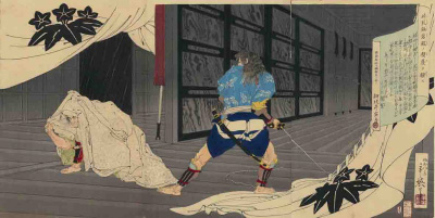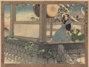Toshikata became a pupil of Yoshitoshi, debuted in around Meiji 17th and created many illustrations for newspapers with Yoshitoshi. On “Tokyo Ryūkō Saiken” (means, Tokyo Vogue Handbook) in Meiji 18th, he was already ranked in as 12th out of 23 (the 1st was Yoshitoshi). In Meiji 20s, he played active roles in illustrations and rekishi-ga and after Yoshitoshi had passed away, when he was 27, he leaded Yoshitoshi party which many pupils were belong to.