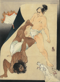 He was born in Kyobashi, Tokyo. Based on his father’s recommendation, he studied drawing by himself by sketching from when he was a child and spend a lot of time studying the style of Kikuchi Yōsai. When he was 17, his father passed away and he run a lantern shop. After that, he got to be popular in hand-painting on ceramic, illustration on newspaper or ukiyo-e. He deepened the exchange with Japanese drawing circles by sending his work to the first Kanga-kai (an exhibition) in Meiji 18th or so on. And he participated in the establishment of Nihon Seinen Kaiga Kyōkai in Meiji 24th. After that, he became a judge of Kyōshin-kai, became a regular member of Nihon Bijutu In (means, Japan Art Society) and contributed to producing modern Japanese drawing circles. His art work “Soga Yo-uchi” was brought by the Emperor Meiji in Meiji 31st. He sent his works to many exhibitions and got many prizes.