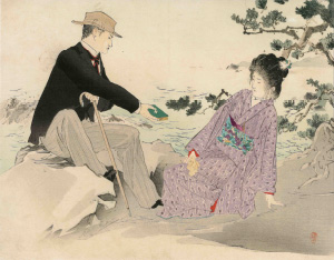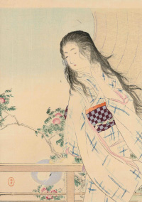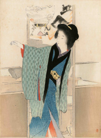 In the era ukiyo-e was declining, this exchange of ukiyo-e-shi and the world of modern Japanese drawing leaded the style of drawing in the latter part of Meiji and created high quality art works. Among them, the art works of bijin-hūzoku-ga (print/drawing of beautiful women with the customs at that time) are excellent and the flow reached to the masters of modern Japanese drawing of bijin-ga (print/drawing of beautiful women), Kaburaki Kiyokata and Itō Shinsui.