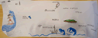 それに関連して、種差展の関連イベントとして県立美術館で、ワークショップとレクチャーを行いました。レクチャーは、初三郎についてのスライド解説と展示作品の鑑賞を。また、ワークショップでは親戚や知人に地元を案内することを前提とした鳥瞰図の作成を行いました。 手書きが苦手な方は観光パンフレットを切り貼りしながら、それぞれ全く違った発想で個性豊かな思い思いの作品が出来ました。