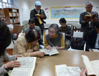さらに、江戸時代以降広く読まれた三国志の版本の現物を実際に触り、江戸時代の人々と同じようにその挿絵を楽しみ感触を味わってもらいました。