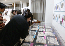 昨年、春期浮世絵展のミュージアム・レクチャーに八戸工業大学感性デザイン学部の学生さんが、先生と共に卒業制作の勉強の一環として参加して下さいました。その内2人の学生さんが浮世絵関連の卒業制作を行うなど(1人は最優秀賞)、本物の作品から何かを感じ取ってくれたことは、大変大きな喜びでした。