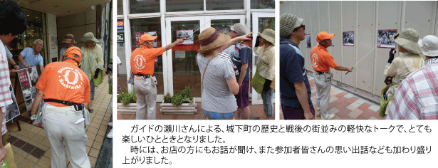 第1展示「移ろいゆく街並み」として中心街に展示中の戦後の街並み写真も使いながら、瀬川征吉氏(市民ガイド八戸協会会長)と一緒に街歩きを行います。