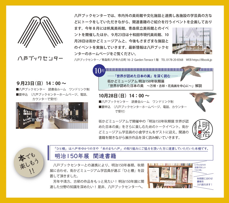 明治150年 「世界が認めた日本の美~万博・古邨・花鳥画を中心に~」関連イベント■八戸ブックセンターとの連携企画
