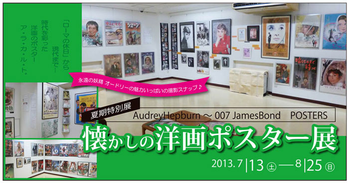 夏期は、昨年の邦画展に続き洋画ポスター展を開催しています。昨年50周年を迎えた「007」の全作品を公開。特に日本で撮影された「007は二度死ぬ」の撮影エピソードやスチール写真等も展示しています。また「007」と共にそれぞれの時代を彩った洋画ポスターを展示。例えば「007」1作目公開の1962年にヘレン・ケラーの半生を描き高い評価を得た「奇跡の人」。スリリングなアクション満載の大作「007ユア・アイズ・オンリー」と同年公開の南アフリカのコメディー大作?「ブッシュマン」等々…