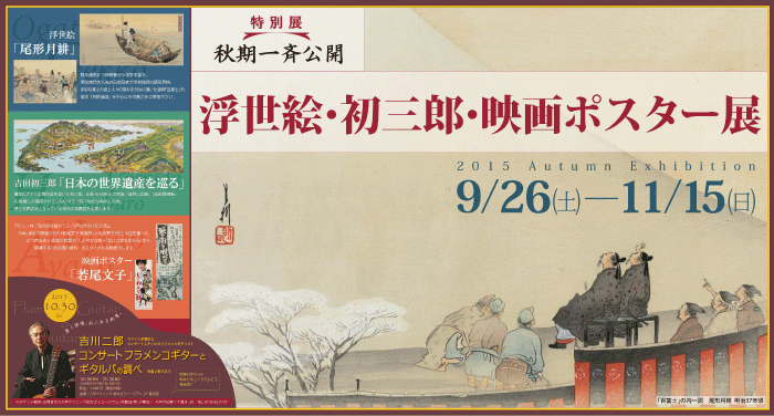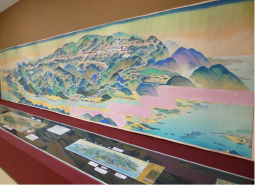 軽妙洒脱かつ情感豊かな世界を描き、明治時代人気の日本画家で浮世絵師の「尾形月耕」の浮世絵。種差にアトリエ兼別荘を築いた初三郎の鳥瞰図は、全長4m60cmの肉筆「高野山図絵」(高画質複製)や10数冊しか現存が確認されていないグラフ誌「HIROSHIMA」の他、鳥瞰図で「日本の世界遺産を巡る」旅気分を味わって頂ければと思います。また、今年東京で映画祭も開催された昭和の大女優「若尾文子」の映画ポスターなども約100点展示しております。