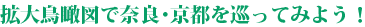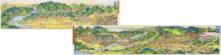 今回は、京都・奈良の鳥瞰図数点を拡大展示。初三郎の奇想天外な構図に頭をひねりながら、旅行気分を味わってみませんか?