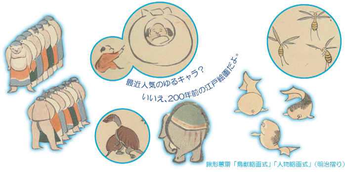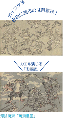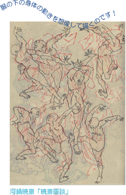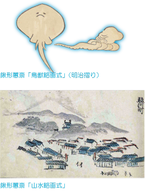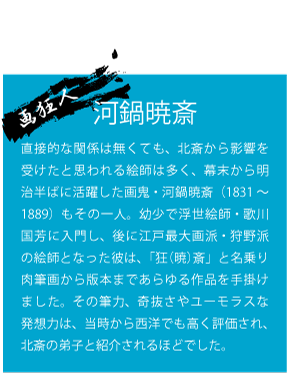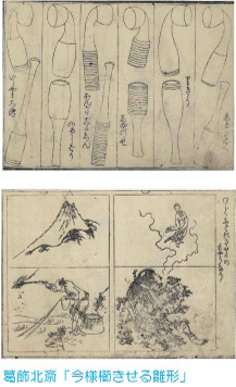 最後に、北斎の絵手本の他、北斎に影響を与えた鍬形蕙斎の各種「略画式」、北斎から影響を受けた河鍋暁斎の「暁斎画談」「暁斎漫画」などの奇想天外かつ軽妙な筆さばきによる絵手本を、たっぷりとご紹介致します。