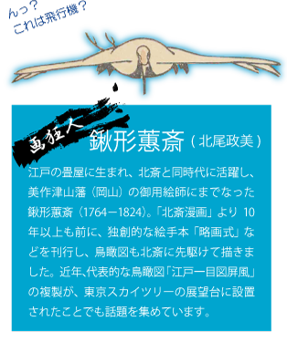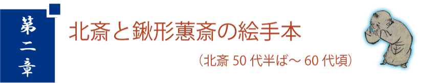 読本挿絵などで人気を博し民間絵師の憧れにもなった北斎は、50代半ばには読本から離れ、「北斎漫画」に代表される多くの絵手本を描き始めました。第二章では、「北斎展」(八戸市美術館)に出展の「北斎漫画」以外の多彩な北斎の絵手本をご紹介します。また、浮世絵師から津山藩の御用絵師まで上り詰め、同世代のライバル的存在としても北斎に影響を与えた鍬形蕙斎(北尾政美)の作品も併せて展示。 「北斎はとかく人の真似をなす。何でも己が始めたることなし」と語ったといわれる蕙斎の独創的な作品は、江戸後期絵画の多彩さを再認識させてくれます。