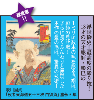 5周年となる今年の春期展は、世界が認める驚異の木版技術による100点超の江戸浮世絵を大公開。美人画や役者絵の華やかなデザイン性、絵文字や和歌などを絡ませ頭でも楽しませる教養さ、魚や野菜を擬人化した社会風刺等盛り沢山。浮世絵に描かれ江戸っ子の頭の中にイメージされた実在又は空想の様々なキャラクター(奴ら)が大集合!