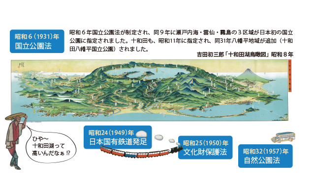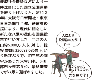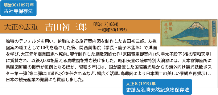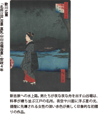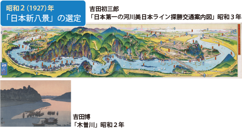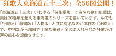江戸時代、街道と宿場の整備が進み、旅は人々の娯楽となりました。寺社詣を口実に、江戸や京都の名所を訪れ芝居や食事を楽しむ。浮世絵にはそんな彼らの姿と共に、旅に関連させ狂歌や伝説などを楽しむ文化が表れています。全国に鉄道網が敷かれる明治を経て、大正以後の経済発展により旅の大衆化が進み、国家も自然保護・外貨獲得・国民の保健休養教化の一環などの目的で関連政策を強化、近代の観光産業が成立していきます。そんな時代に鳥瞰図や新版画などが生まれ、その近代の新たな風景は人々に旅への憧憬を抱かせました。今回は、これらの作品を紹介し江戸から昭和初期までの旅を概観します。