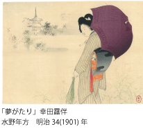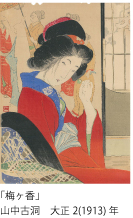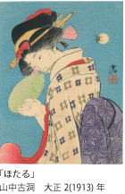 街かどミュージアムでは、江戸後期の浮世絵から昭和初期の新版画まで、絵師・彫師・摺師により制作された日本の伝統木版画を体系的に収集しています。江戸~明治初期の浮世絵のイメージが強い伝統木版画ですが、明治中期~大正時代にかけて、あまり知られていない美しい作品が多く存在します。それらは、近代日本画壇形成期に活躍した絵師たちによるもので、浮世絵の画風とは異なり、浮世絵には分類できない作品群です。また、彫りも摺りも、浮世絵の衰退を経て生き残った精鋭たちによる見事な技をみせています。今年は、その中から、春・秋共に近代美人木版画を大公開、秋は近代小説の木版口絵を中心に展示致します。さらに、小村雪岱の作品も展示予定です。